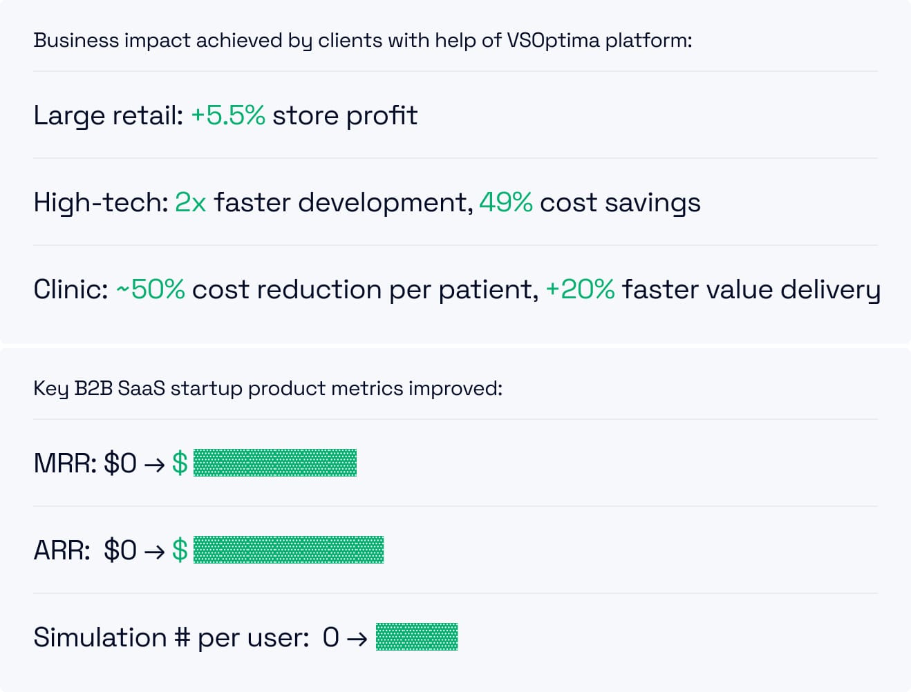 What is OMTM? Every lean startup focuses on One Metric That Matters. For VSOptima, that metric was simulations per user per month. Everything we built aimed to increase this number.