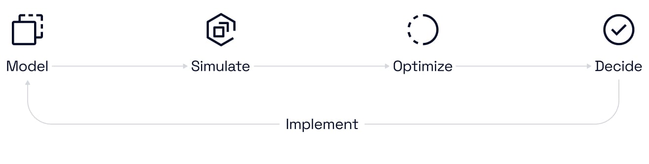 Operational executives control million-dollar optimization decisions but can't use complex simulation tools like AnyLogic to predict outcomes, measure ROI, or make faster decisions that drive efficiency.