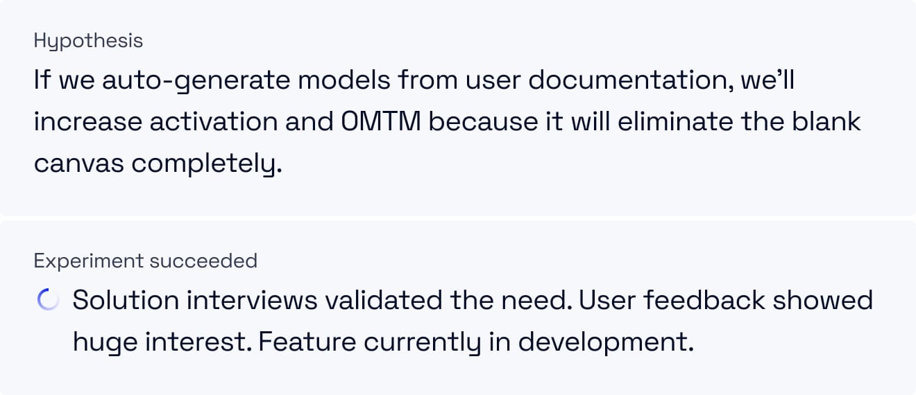 These challenges generated many hypotheses. Rather than detail how we framed, categorized, and prioritized them, I'll focus on just one. It’s self-explanatory, engaging, and impactful to MRR, ARR.
